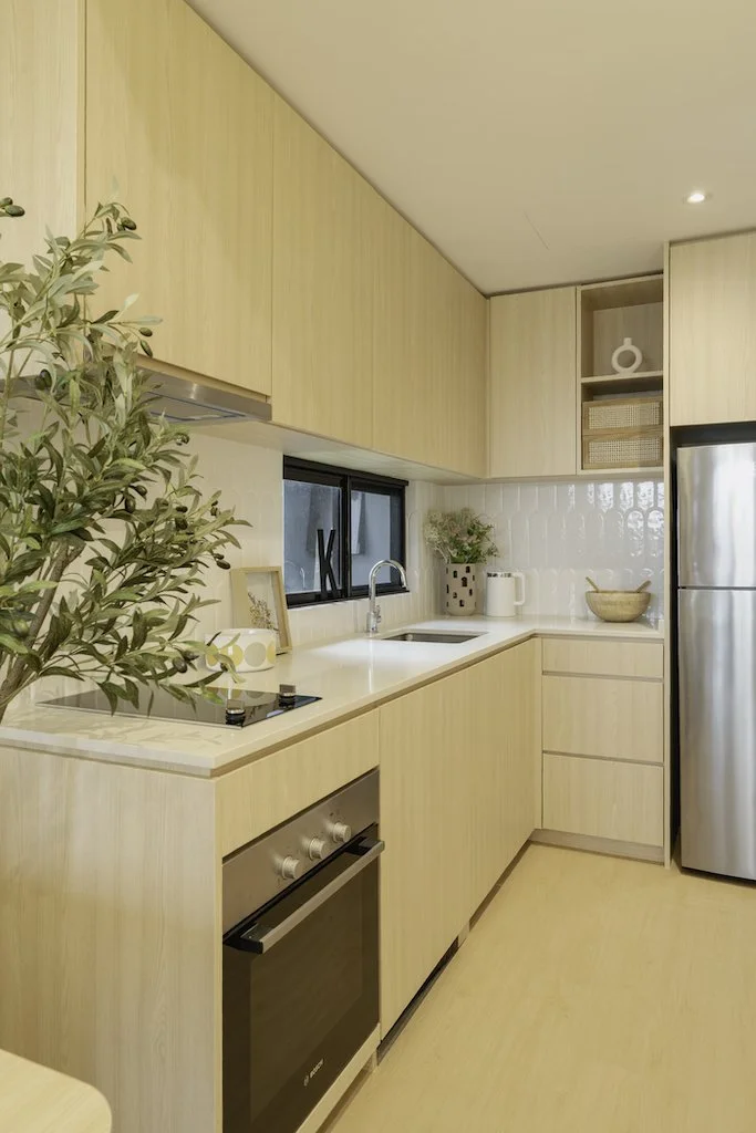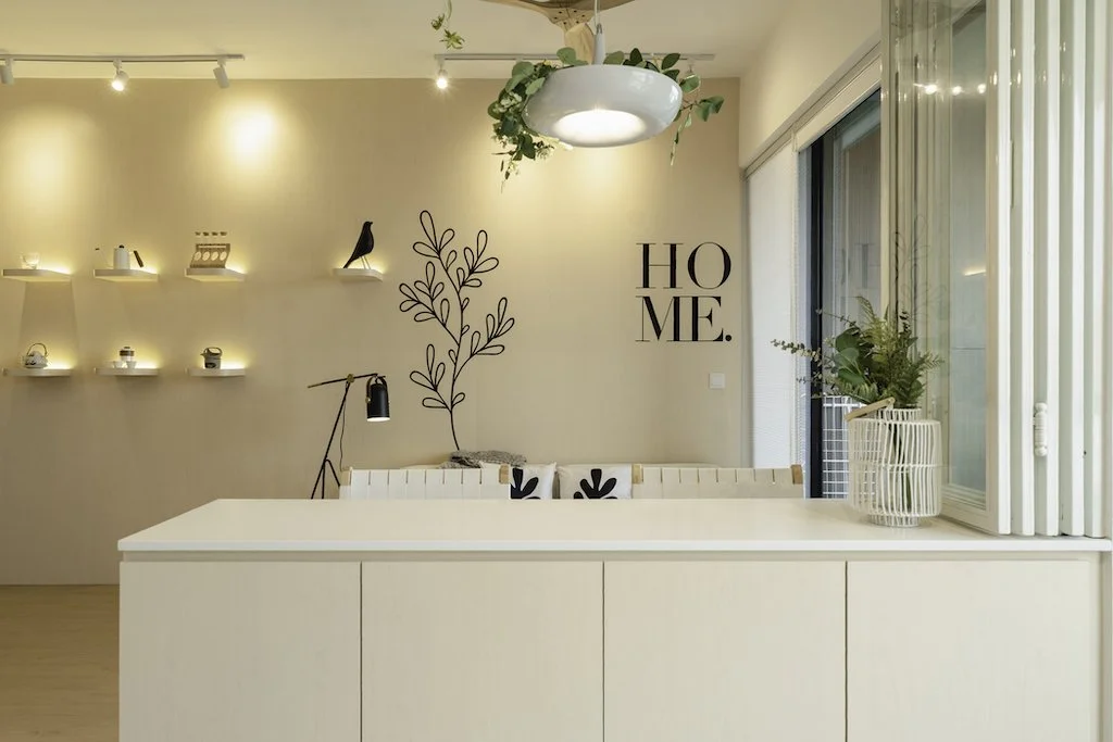 In a time where many were going for Japandi style, we at Wolf Woof wanted to create something more unique for our sweet-natured Client. We created a bespoke feature wall that spans the Living Room and Dining area playing it up with somewhat adorable Scandi-ish graphics and a Zen display of Japanese drinkware… like a little museum of sorts. Your Home, Your Rules.