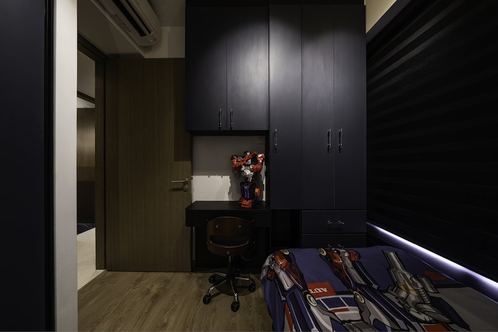 We went for a crazy and bold approach – to design the home like a jewellery boutique so as to showcase and honour the gems in the best light possible. The jewellery boutique concept is encapsulated in the design of the showcase cabinet cum TV console. We knew that this will be the glue that gels the look together so we must get it right. From the glass display case to the storage cabinets, we had to balance the need between storage and aesthetics.